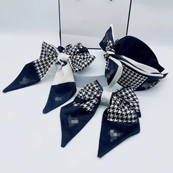 فتاة نسائية أنيقة أنيقة مصمم بووكنوت الفاخرة العلامة التجارية الشهيرة هوندستوث النسيج المطبوعة الشعر القوس كليب عقال مجموعة سكرونشي