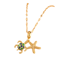 バルクデリケートかわいいロングチェーンチタン鋼ZIRCON合金金メッキ海洋動物ジュエリーオパールブルーウミガメペンダントネックレス