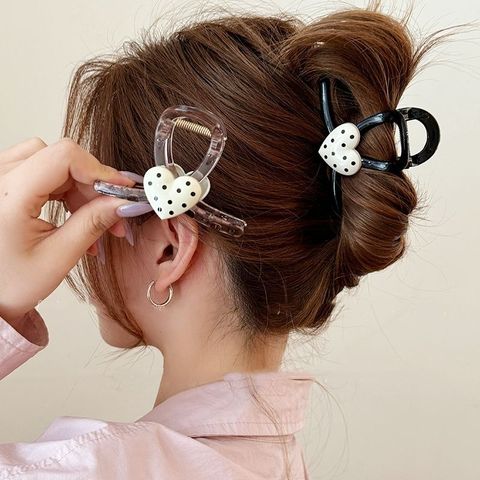 人気セールアイテムフレンチビンテージスタイルファッションアクセサリー女性女の子ミッドサイズドットプリントハート型プラスチック製ヘアクリップ