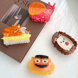 좋은 품질 카와이 사랑스러운 겨울 가을 8cm 만화 동물 고슴도치 달팽이 곰 여우 모양 패턴 아세테이트 헤어 클로 클립 액세서리