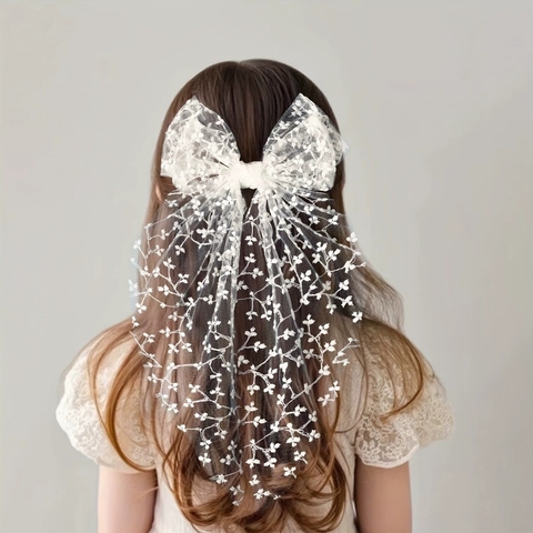 Hot Sale Items Girl Kid Pretty Hairpin Transparent Lace Fabric Bow Hair Clip Sweet Lovely Embroidery Flower Long Tail Hairbow