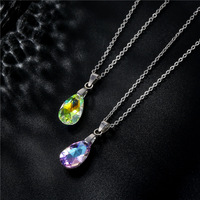 Wholesale Trendy Simple Women Girls Non-allergic Stainless Steel Teardrop Crystal Pendant Necklace Link Chain Minimalist Jewelry